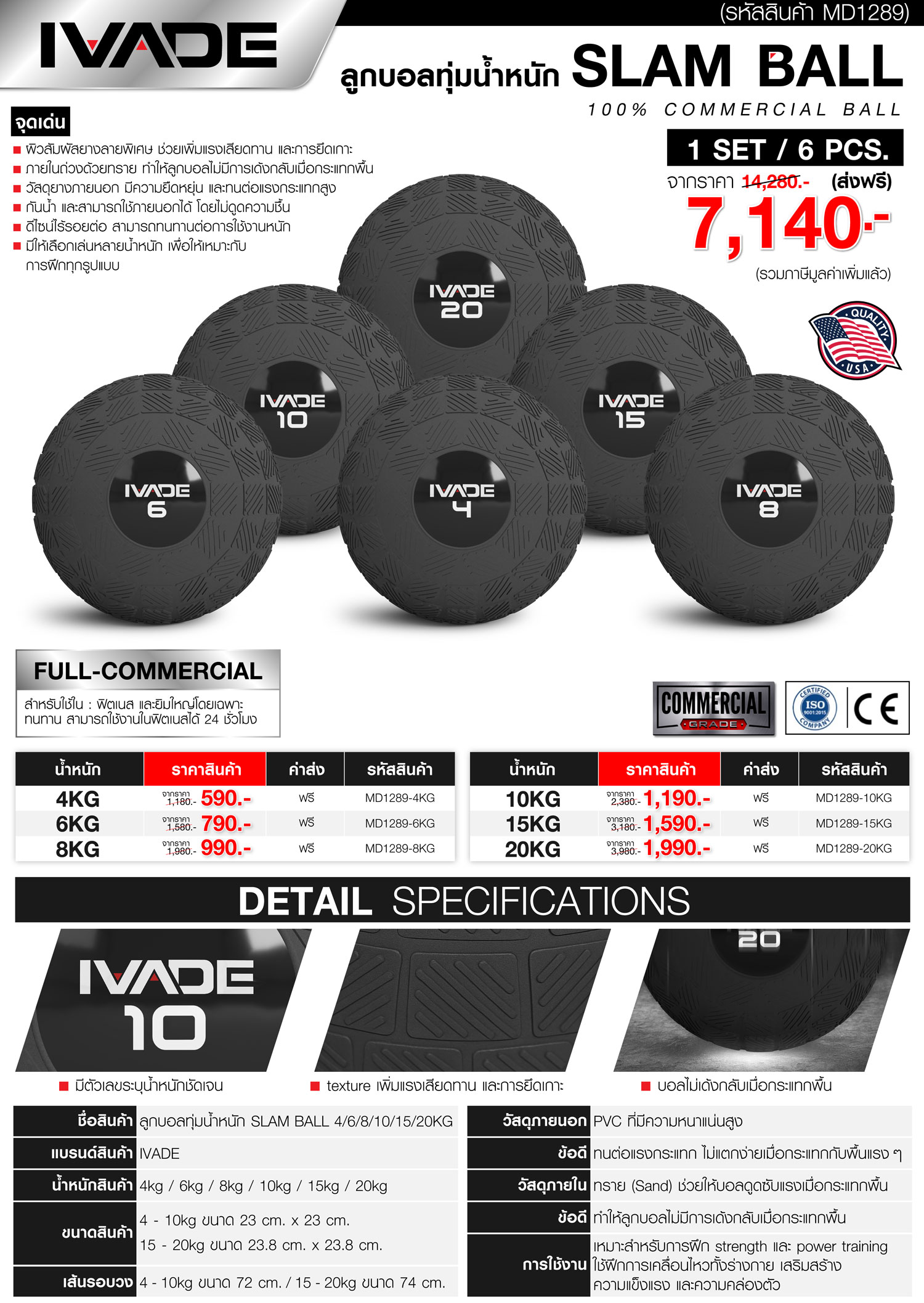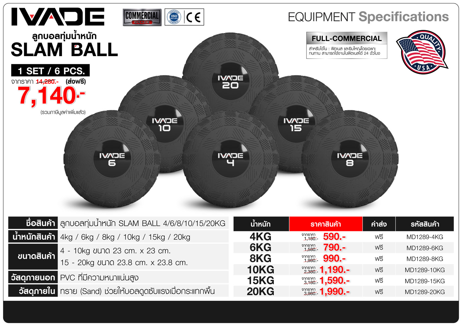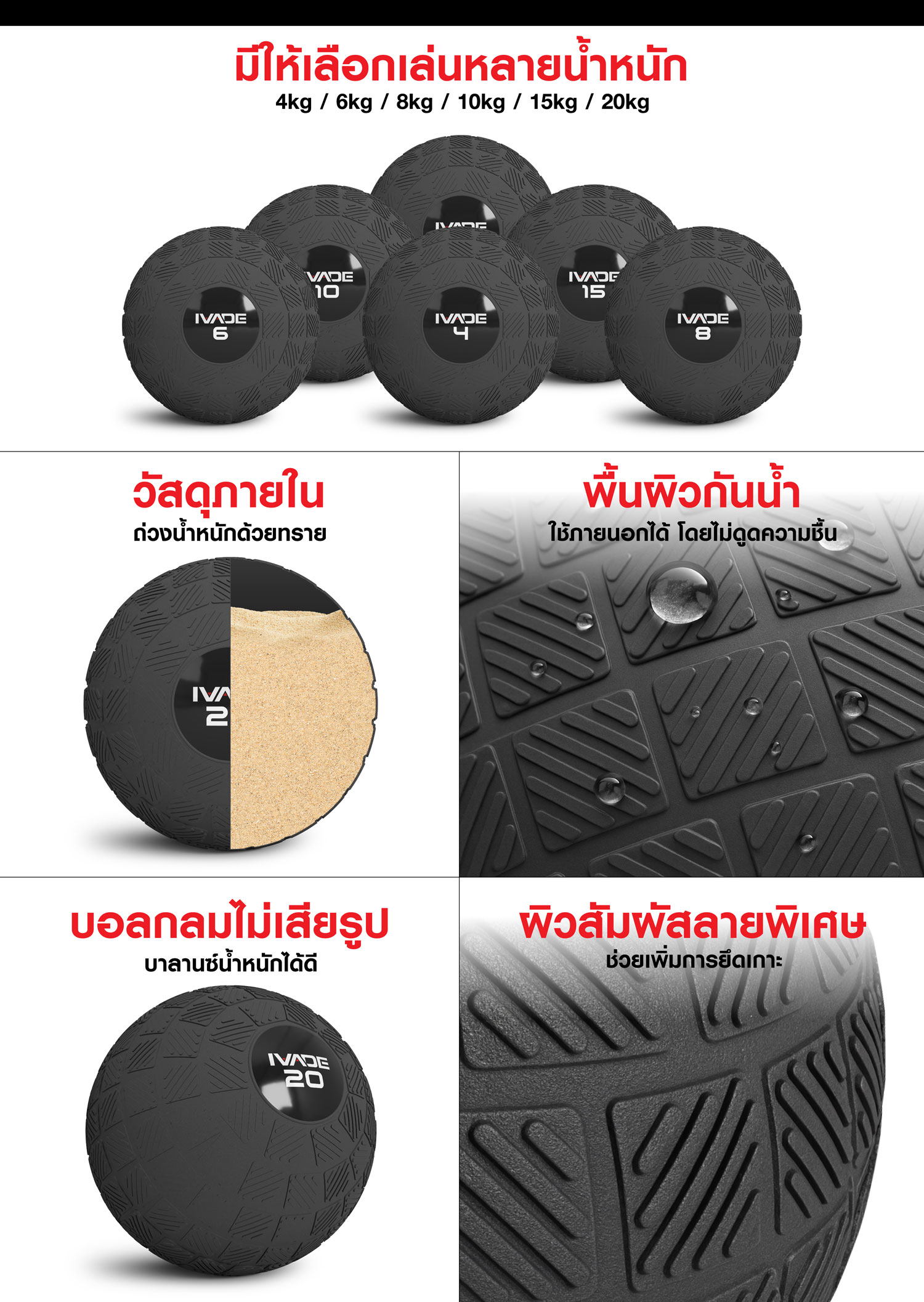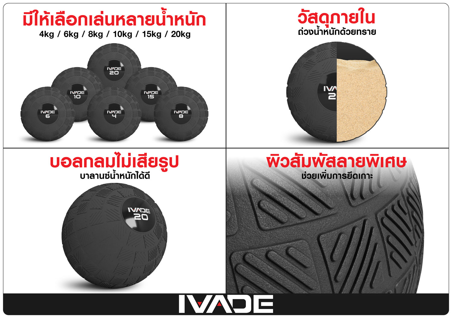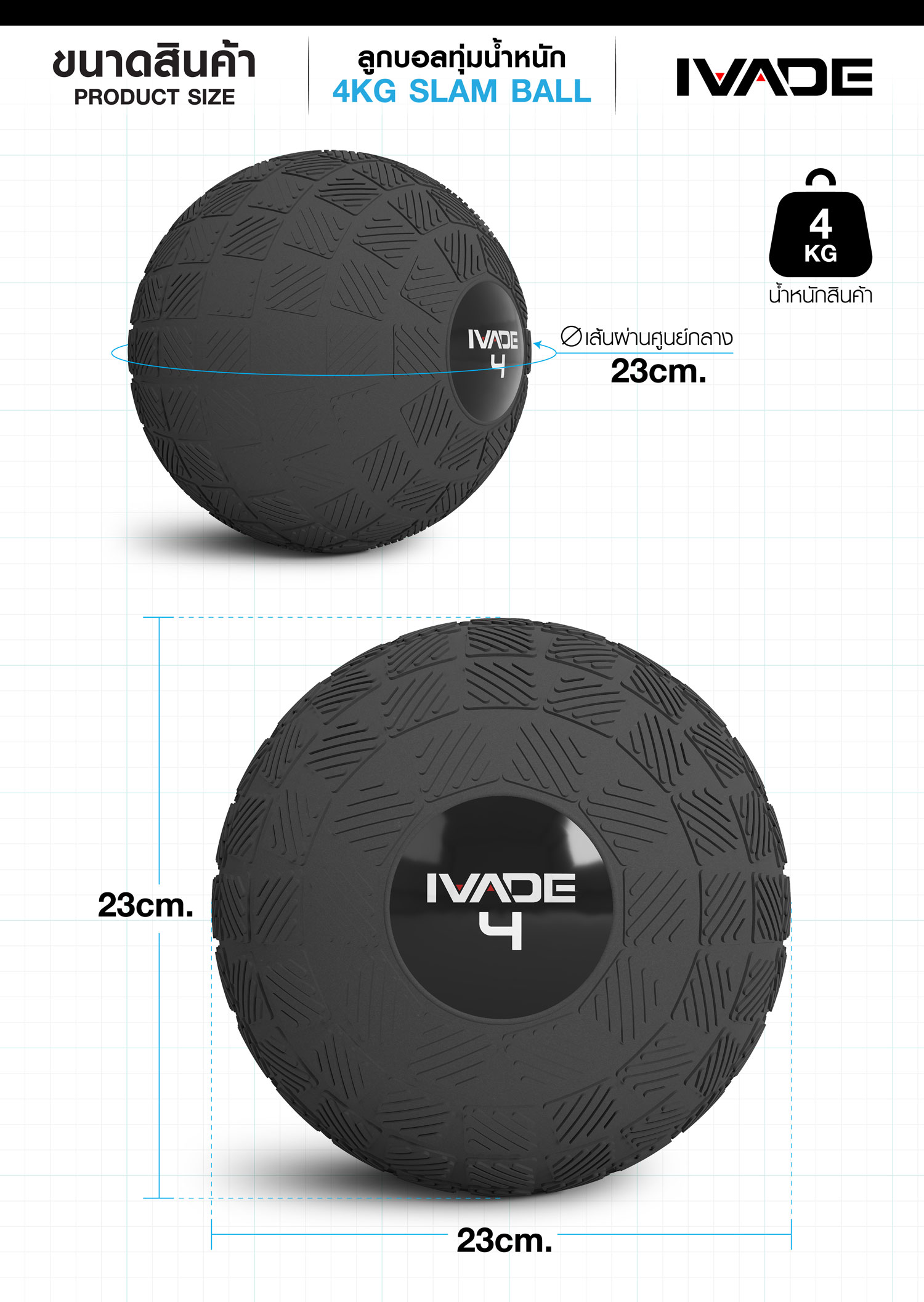 ลูกบอลทุ่มน้ำหนัก SLAM BALL IVADE 4KG (MD1289) FULL-Commercial สินค้าใหม่
