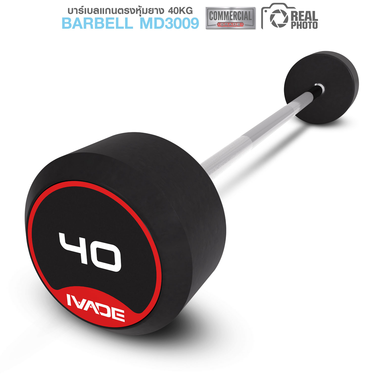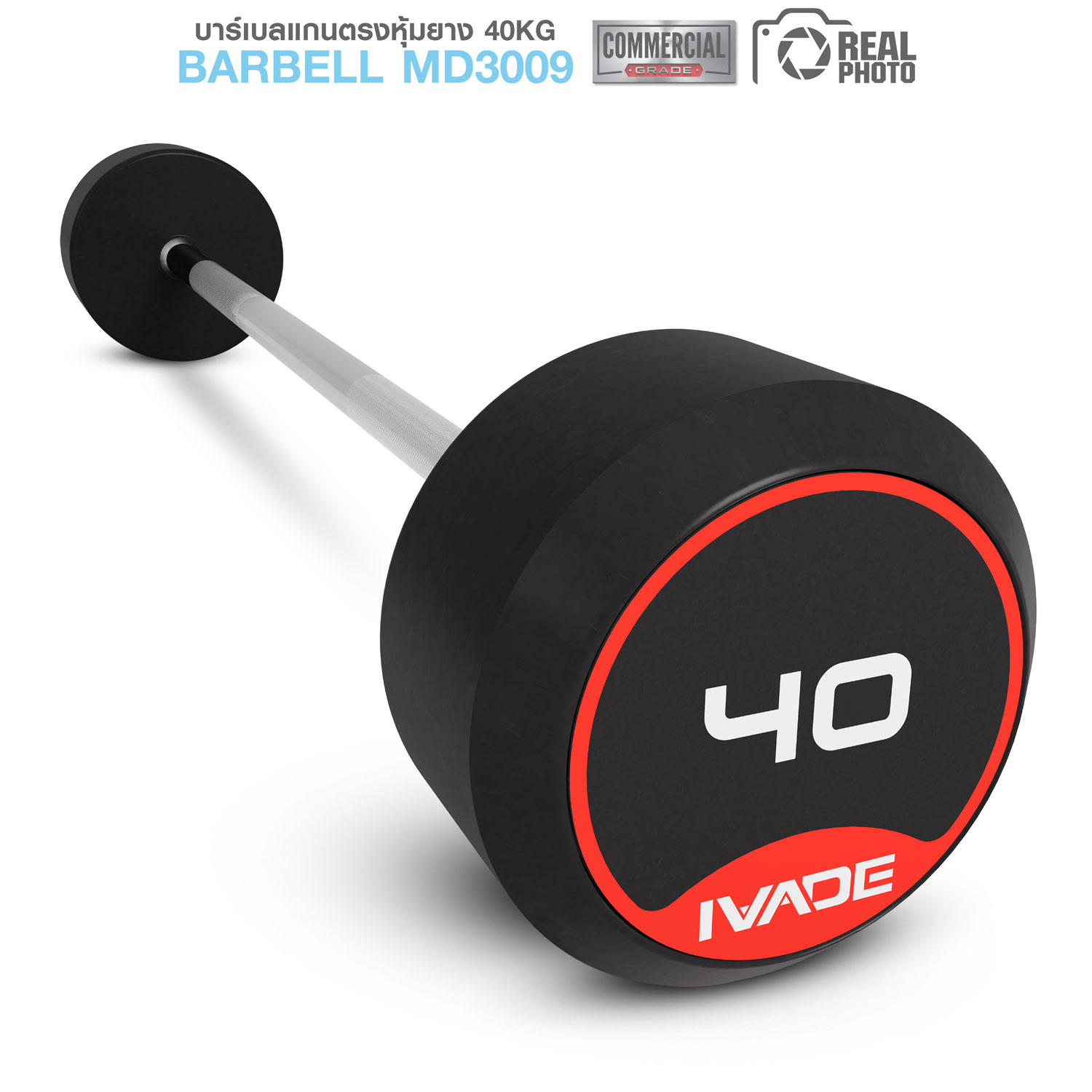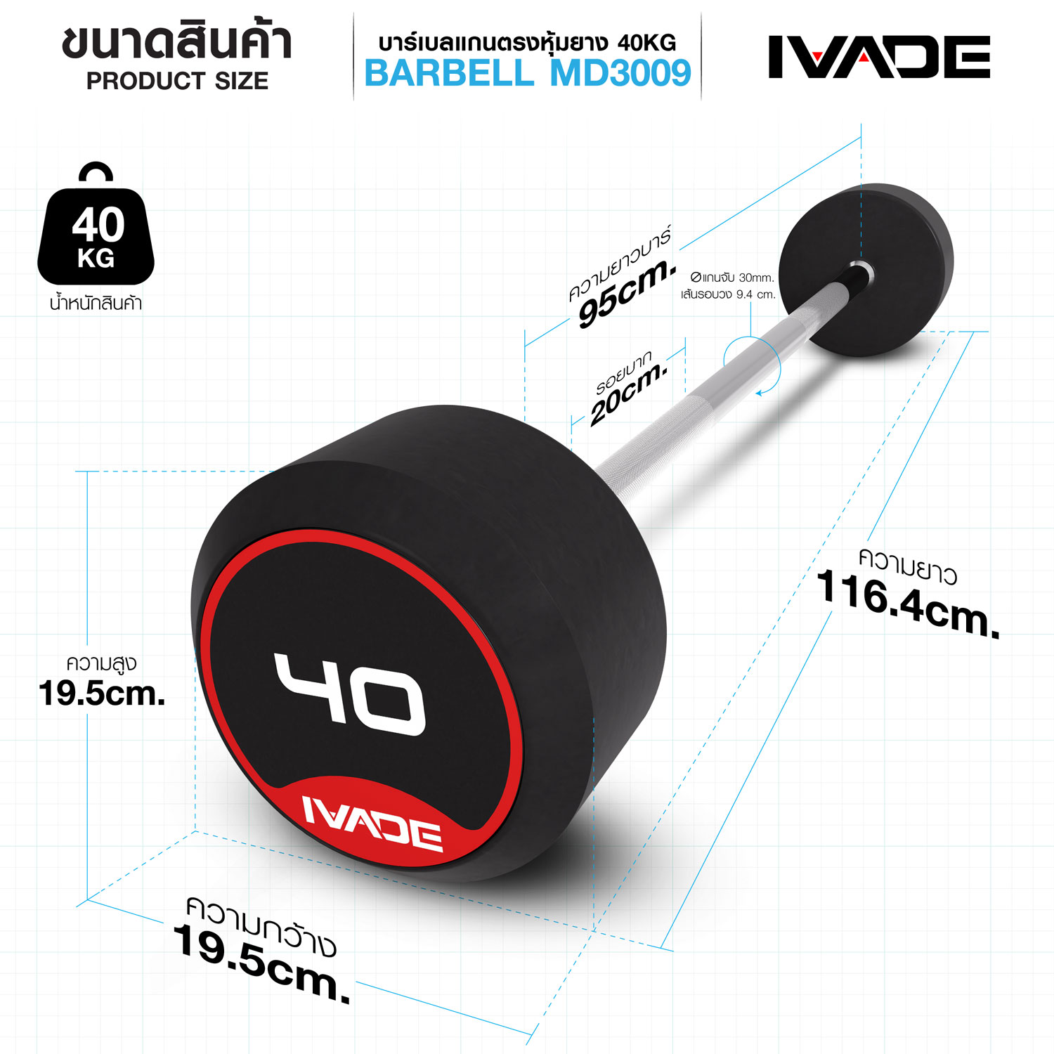 บาร์เบล แกนตรง หุ้มยาง IVADE ขนาด 40KG x 1 ชิ้น FULL-Commercial สินค้าใหม่ ยางหุ้มคุณถาพสูง ไม่แตกร้าวง่าย แกนกลาง เหล็กหล่อแข็งแรง ทนแรงกระแทกสูง ด้ามจับ ลาย Knurling ไม่ลื่น ไม่บาดมือ วัสดุด้ามจับ เหล็กกลึง CNC พร้อมเคลือบโครเมียม หัว และด้ามเชื่อมติดกันแน่น ไม่คลายหลุด