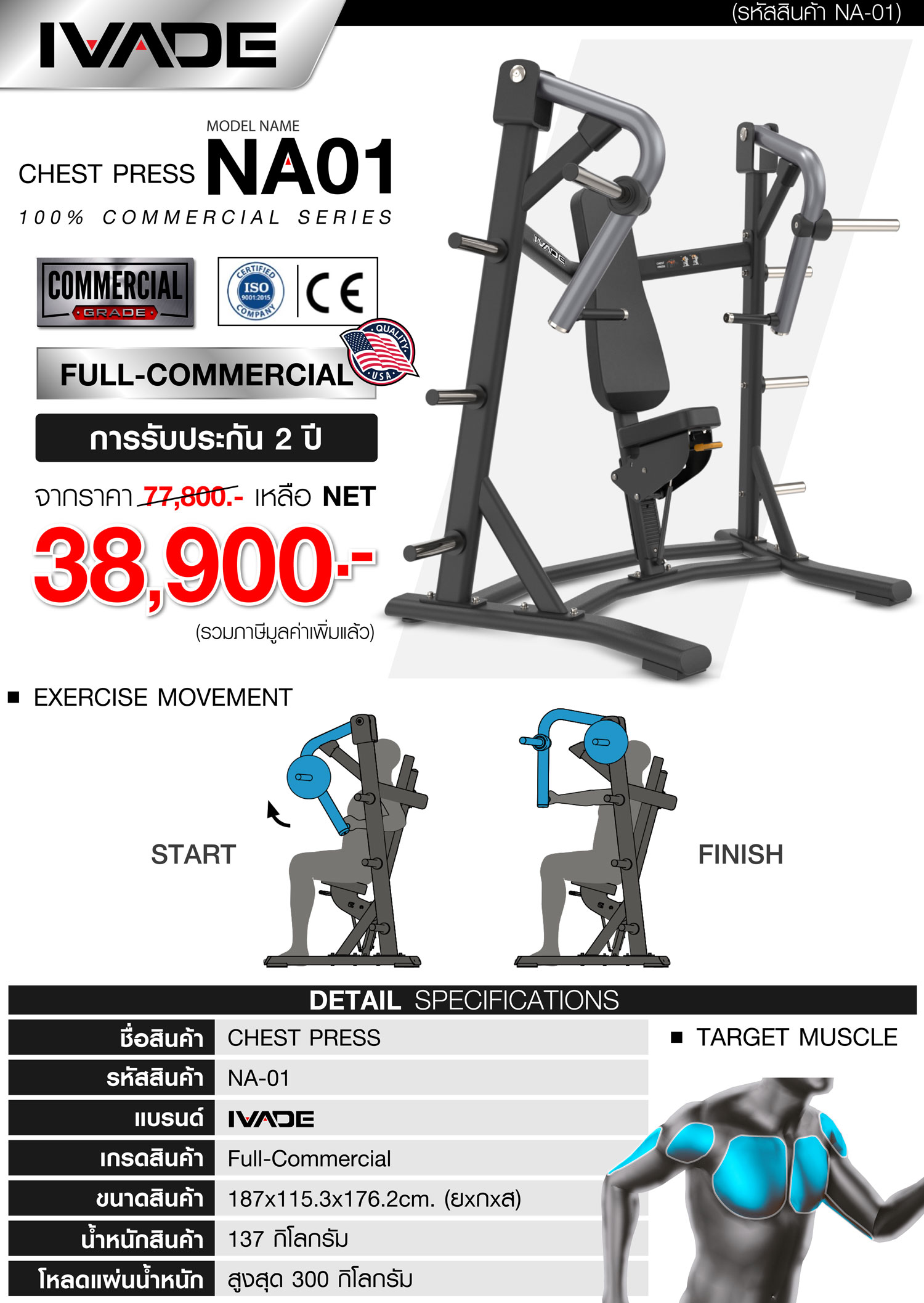 ภาพถ่ายสินค้า NA-01 – เครื่อง Chest Press Plate-Load – IVADE – เครื่องออกกำลังกาย บริหารกล้ามเนื้อหน้าอก หากคุณต้องการข้อมูลเพิ่มเติมเกี่ยวกับสินค้ารุ่นนี้กดแชทกับเรา