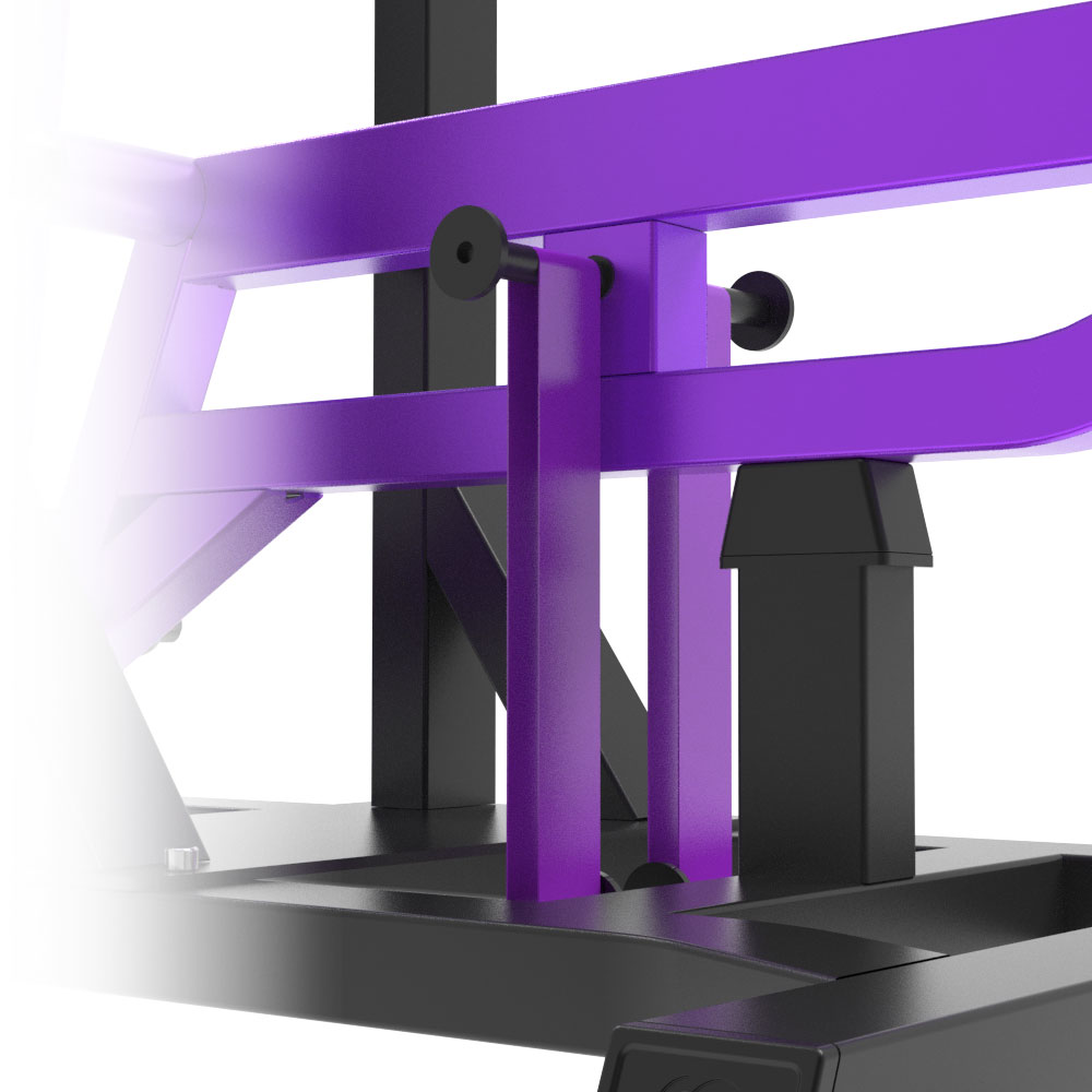 แผ่นรองต้นขาแบบปรับได้หลายระดับ (Multi-Adjustable Thigh Pad) และ แป้นวางเท้าแบบกันลื่น (Ergonomic Anti-Slip Footplate) ช่วยจัดแนวลำตัวให้อยู่ในตำแหน่งที่ถูกต้อง เหมาะกับผู้ใช้งานที่มีส่วนสูงและช่วงขาต่างกัน เพื่อคงความมั่นคงของเชิงกรานและแนวแรงที่เป็นธรรมชาติระหว่างการฝึก