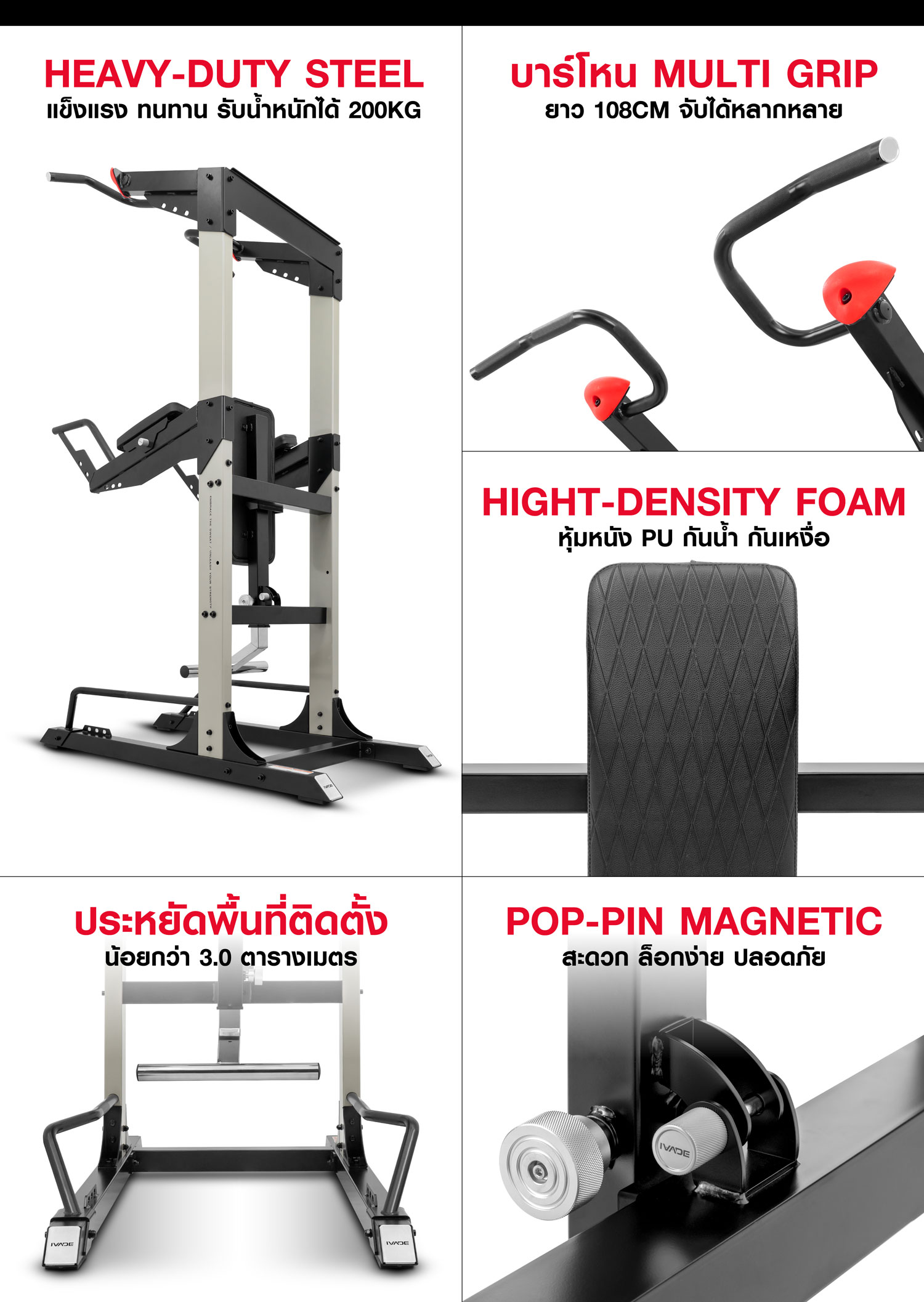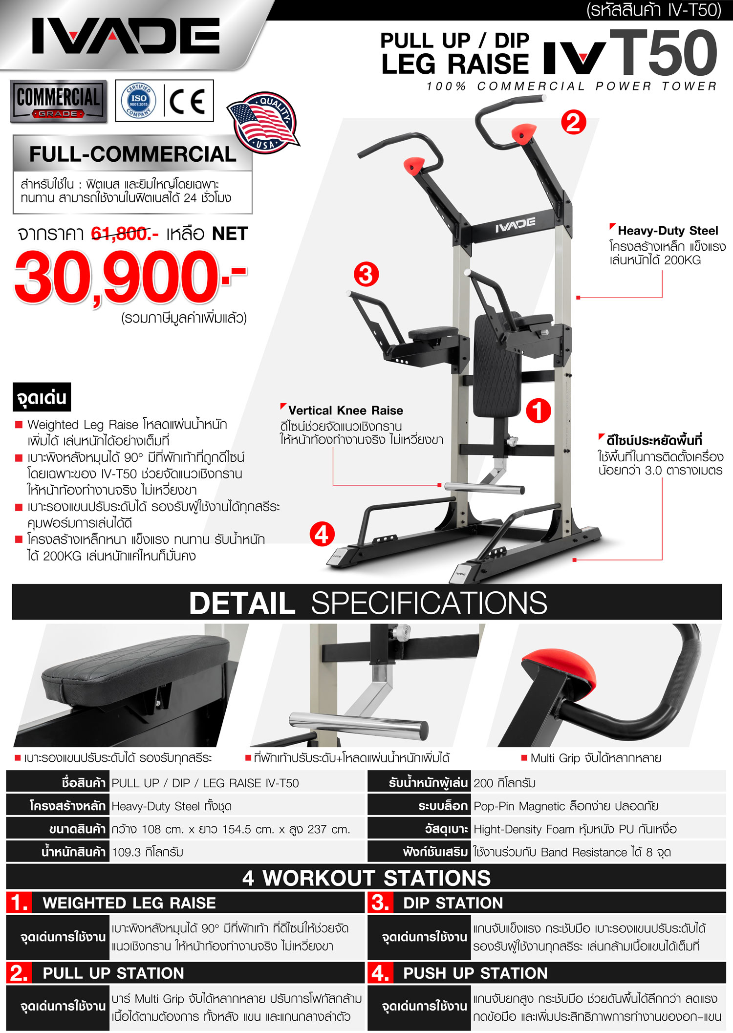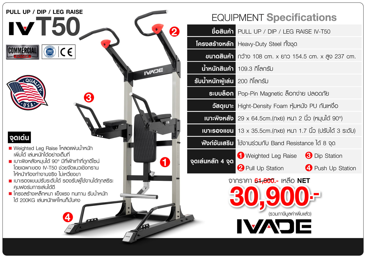 เครื่อง Pull Up / Dip / Leg Raise รุ่น IV-T50 เครื่องฝึกกล้ามเนื้อแบบมัลติฟังก์ชัน รองรับการฝึก 3 ท่าในเครื่องเดียว โครงสร้างแข็งแรงระดับ Commercial Grade เหมาะสำหรับฟิตเนสและใช้งานในบ้านอย่างมั่นใจ